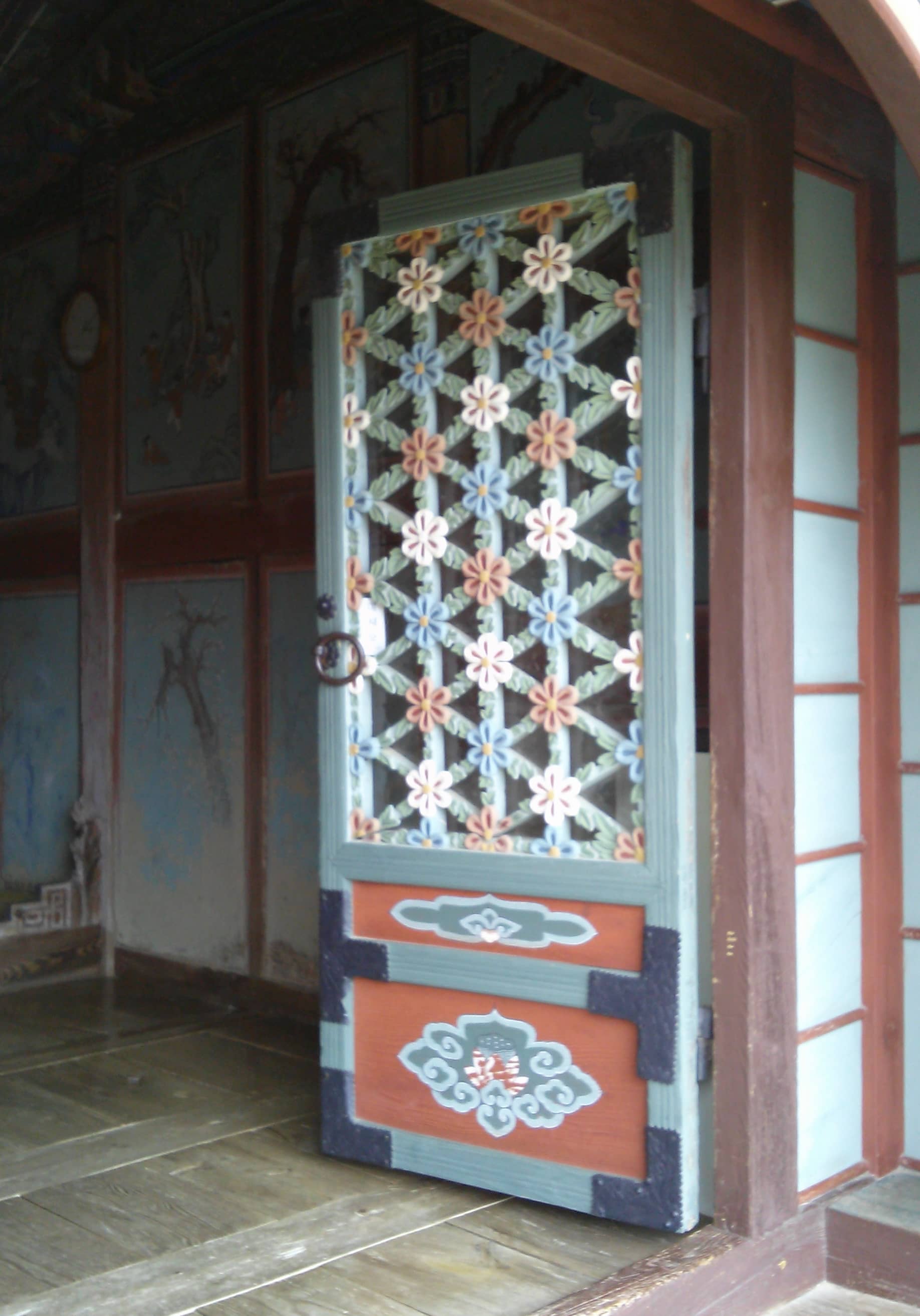 ✅ 꽃살(花纱) → 살대에 꽃 문양을 조각하여 종교적 상징성 강조