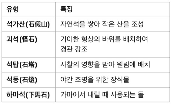 5) 석조 점경물 – 원림의 상징적 장식 요소
