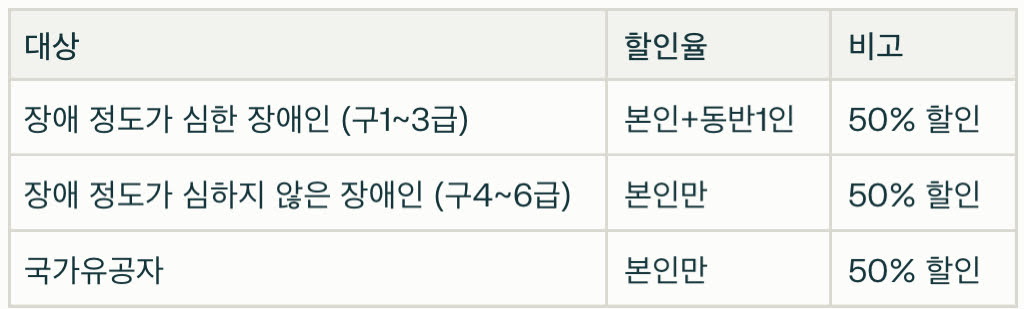 - 대상 : 만65세 이상, 국가유공자, 장애인